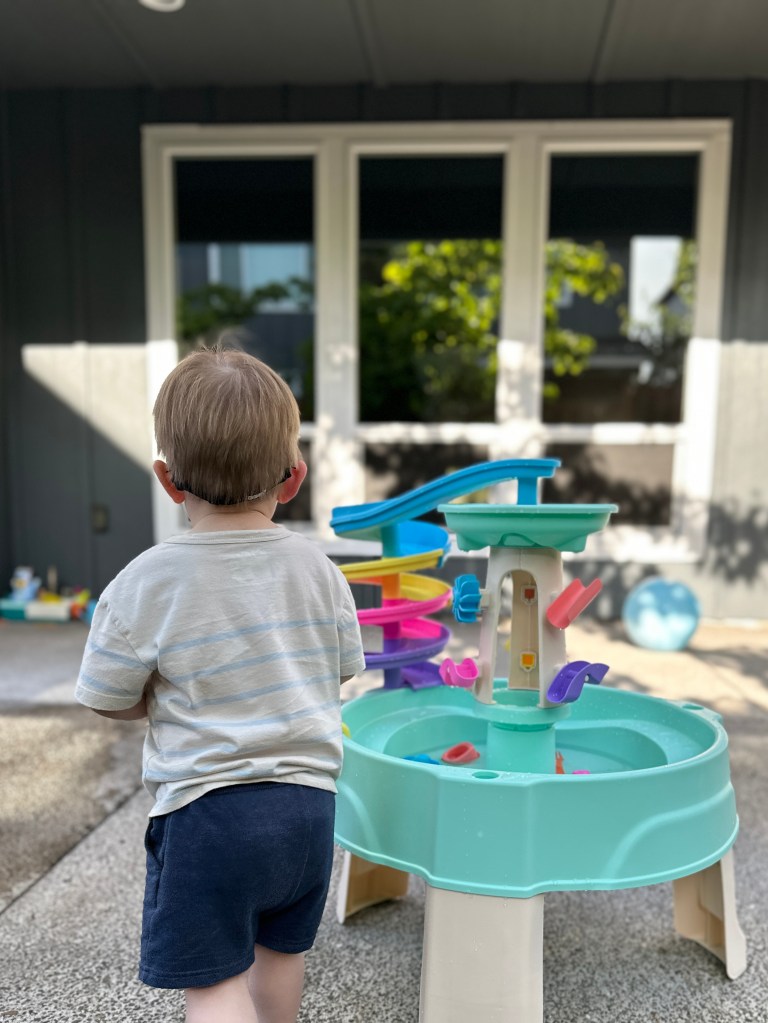 Another big hit in our backyard that is being used every time we hang out there is this water table. I had first noticed it a few weeks back, but since the weather wasn’t great yet I waited, and I’m so glad I did because I bought it on sale during Memorial Day weekend. I like the colors on it, it makes it cute for my kiddo but isn’t ugly in my backyard. So far he mostly uses it as a source of water to help me water the plants, but as long as he’s having fun, it’s all that matters to me.