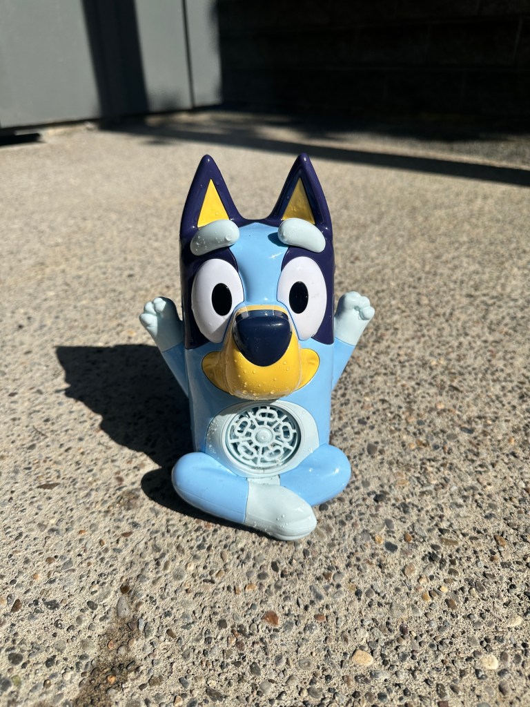 I don’t know a single child (or adult) that doesn’t love bubbles (and if there was an adult that didn’t I wouldn’t trust them). But blowing bubbles again and again for your kiddo is…a lot. This was actually the first backyard toy I bought my son, and he’s been obsessed with it ever since. There are times I even need to turn it off for a little bit because he goes a little too crazy chasing those bubbles, and since balance isn’t amazing in toddlers, I’m trying to prevent falls and injuries. You don’t need a Bluey machine of course, but a lot of alternatives were shapes like weapons, which I hate, or cheap(er) looking ones. I had actually tried a different one I had to return because it didn’t work. This one has an option to play the music theme from the show on loop (yay) but I never use that.