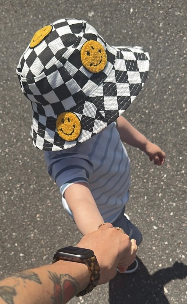 I may not be the biggest fan of bucket hats for myself, but I love them for my son, because they offer more sun protection. This one from Little Trouble is the cutest one I have ever seen. The checkered pattern speaks to my elder emo soul, and the smiley faces (or ‘happy’ as my son calls them) makes it perfect for a child. Another great feature is that it is reversible! So on days where we want something a bit simpler, we also have that option.